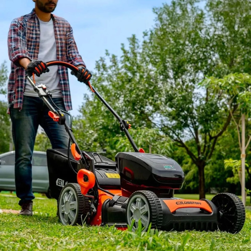 Cortadora de Cesped LÜSQTOFF a Bateria Ecoline, es la herramienta ideal para mantener tu jardín en perfectas condiciones. Con un diámetro de corte de 18” (460 mm) y 7 posiciones de corte, podrás ajustar la altura según tus necesidades. Su capacidad de la bolsa recolectora de 55 L permite recoger eficientemente el césped cortado, facilitando el trabajo. Con un peso de 26 kg, es fácil de maniobrar, y su diseño con plataforma metálica garantiza durabilidad. Además, cuenta con un bajo nivel de ruido, lo que la hace perfecta para usar en áreas residenciales. La autonomía de 75 minutos te brinda suficiente tiempo para completar el trabajo sin interrupciones. Recuerda que la batería y el cargador no están incluidos, lo que te permite elegir la opción que mejor se adapte a tus necesidades. Esta cortadora es nueva y está lista para ofrecerte un rendimiento excepcional.
