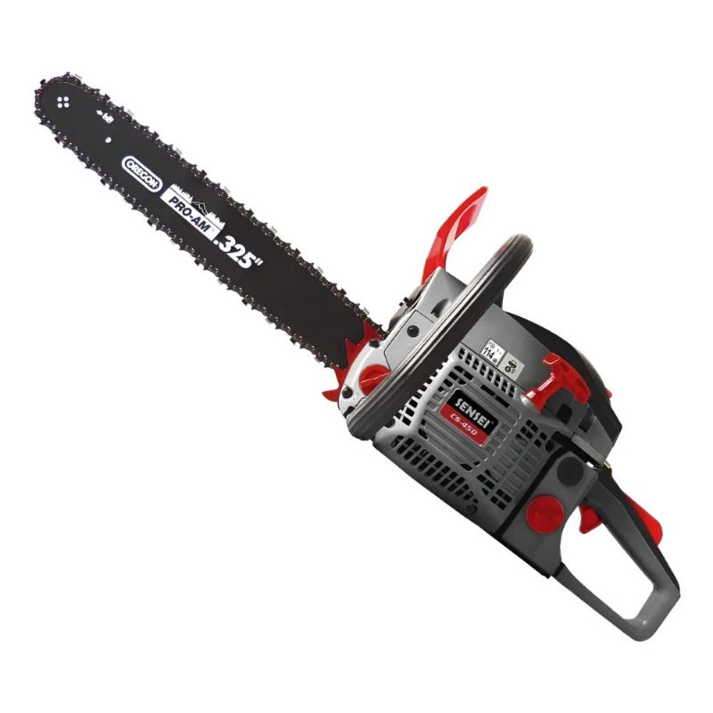 Motosierra SENSEI CS-450, es una herramienta potente y fiable, ideal para y trabajos exigentes. Con un motor de 45.4cc y 2.7HP de potencia, junto con una espada Oregon de 18 pulgadas (45cm), realiza cortes rapidos y precisos en maderas de todo tipo. su diseño robusto y sun sistema de seguridad, que incluye un freno de cadena inercial, garantizan un uso comodo y seguro. Ademas cuenta con un sistema de lubricacion automatica de cadena para un mantenimiento semcillo. Es la opcion perfecta para prrofesionales y usuarios que necesitan una motosierra de alto rendimiento para trabajos de tala, poda o preparacion de leña.