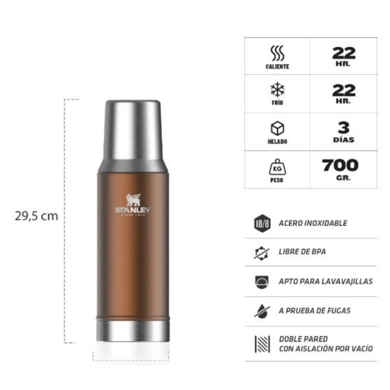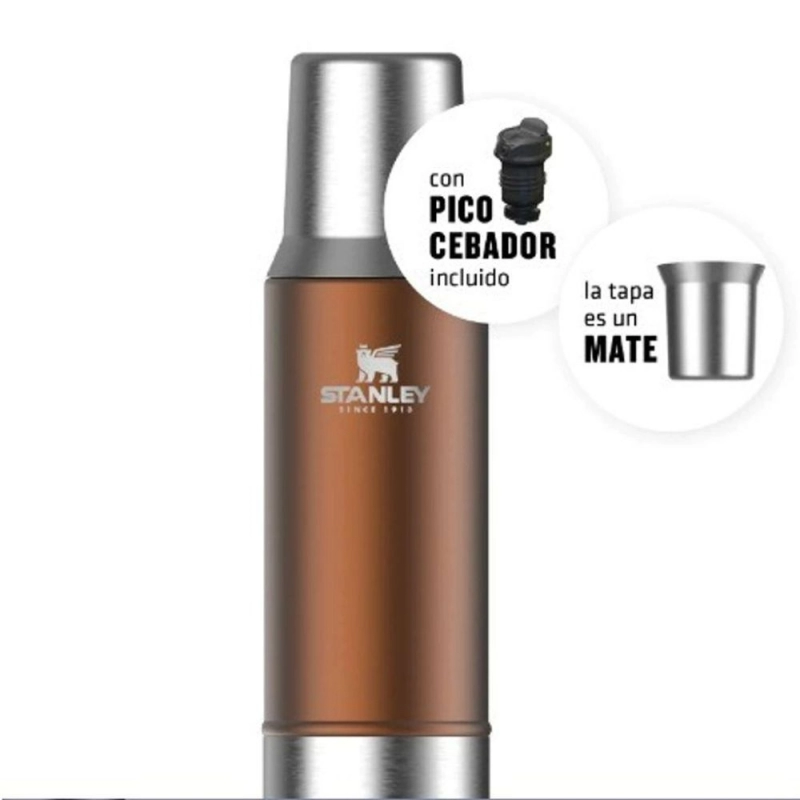 Termo Mate System STANLEY Cobre 800ML, es la solución perfecta para los amantes del mate que buscan la conveniencia y la legendaria durabilidad de Stanley. Este termo, de diseño innovador, cuenta con un tapón cebador que permite verter agua de forma precisa y controlada, manteniendo la yerba en su lugar. Su doble pared de acero inoxidable asegura que el agua se mantenga caliente por 15 horas o fría por 15 horas. Es compacto, robusto y listo para acompañarte en tu día a día, garantizando el mate perfecto en cualquier momento.