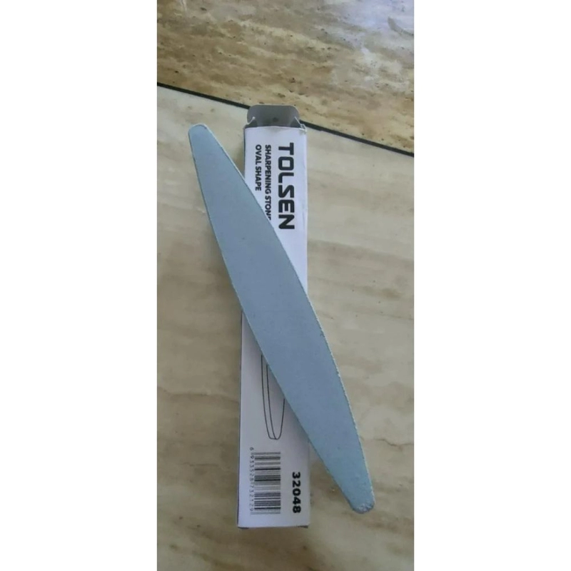 Piedra de afilar ovalada de la marca TOLSEN, diseñada para el afilado preciso de cuchillos y herramientas. Ofrece doble granulometría para un afilado versátil y un borde duradero.