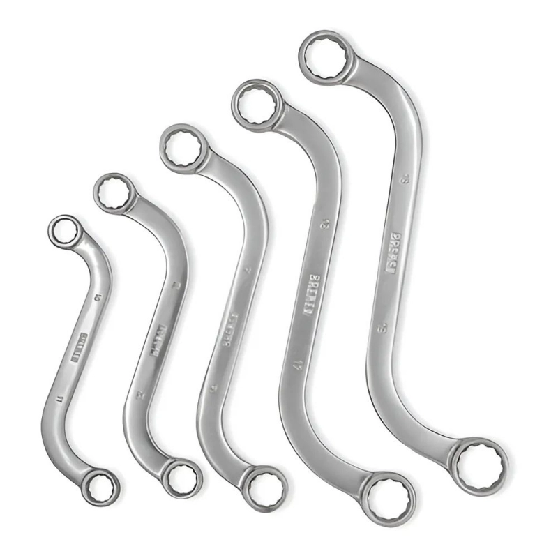 Set profesional BREMEN de 5 llaves estriadas curvas, forjadas en acero cromo vanadio, optimizado para apriete y ajuste preciso en espacios confinados y de difícil acceso.