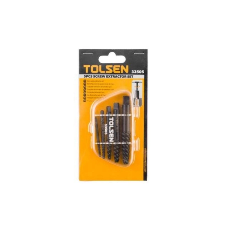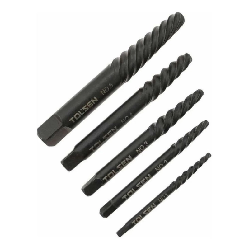 Set profesional TOLSEN de extractores de acero de alta resistencia, diseñado para la remoción eficiente y precisa de tornillos dañados o rotos.