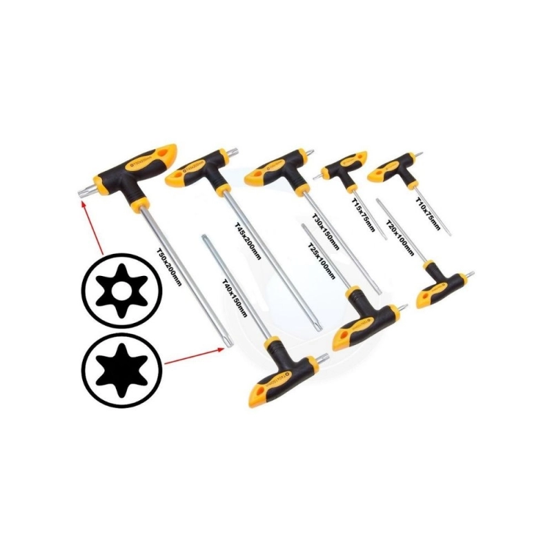 El Juego de Llaves Torx TOLSEN Tipo T de 8 Piezas es una solución integral para profesionales y entusiastas que requieren herramientas de precisión para tornillos Torx. Cada llave está fabricada con materiales de alta resistencia, garantizando una larga vida útil y un rendimiento óptimo en diversas aplicaciones. El diseño ergonómico tipo T proporciona un agarre cómodo y una mayor capacidad de torque, facilitando el trabajo en espacios reducidos o con tornillos de difícil acceso. Este set es ideal para tareas de mantenimiento automotriz, electrónica, mecánica y ensamblaje, asegurando un ajuste seguro y eficiente. La calidad TOLSEN respalda la fiabilidad y durabilidad de cada pieza.
