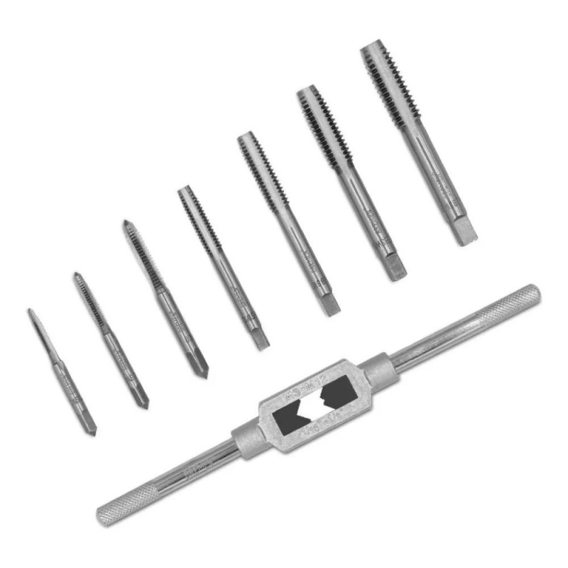 Juego de machos BREMEN de 8 piezas para roscas Whitworth, ideal para trabajos de roscado manual y mantenimiento.