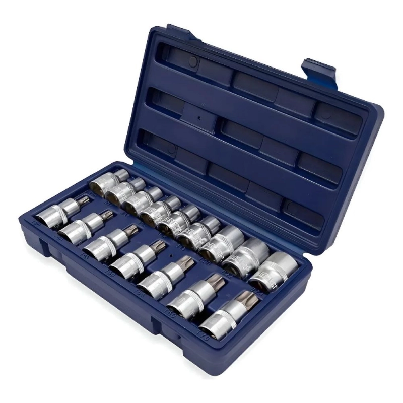 Juego de 16 piezas BREMEN que incluye bocallaves y puntas Torx, ideal para trabajos de ajuste y desajuste en diversas aplicaciones.