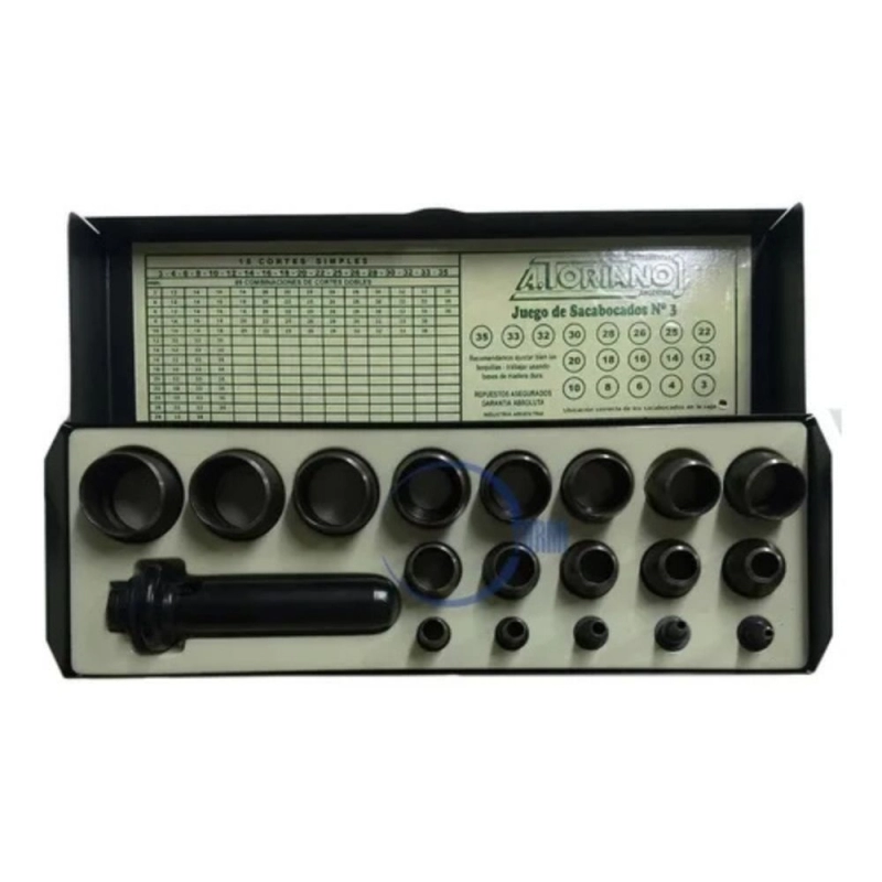 Juego de sacabocados TORIANO N°3 de 18 piezas, ideal para perforar diversos materiales con precisión y eficiencia.