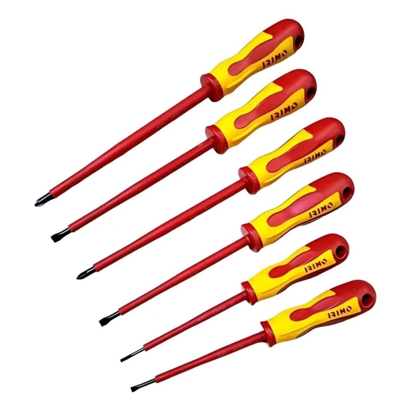 Set de destornilladores IRIMO con aislamiento de 1000V, ideal para trabajos eléctricos seguros. Incluye 6 piezas esenciales.