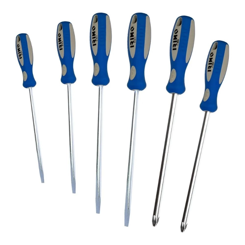 Juego esencial de 6 destornilladores IRIMO con puntas planas y Phillips, ideal para una amplia gama de trabajos de ajuste y montaje.