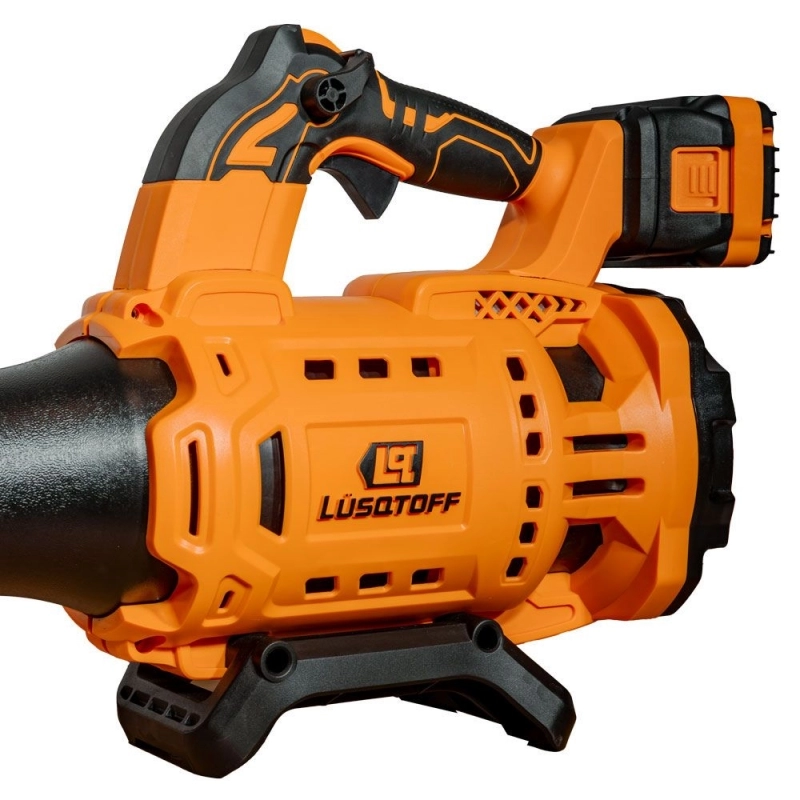 Soplador inalámbrico de 18V de LÜSQTOFF, diseñado para la eficiente limpieza de hojas y residuos en áreas verdes, ofreciendo movilidad y rendimiento óptimo.