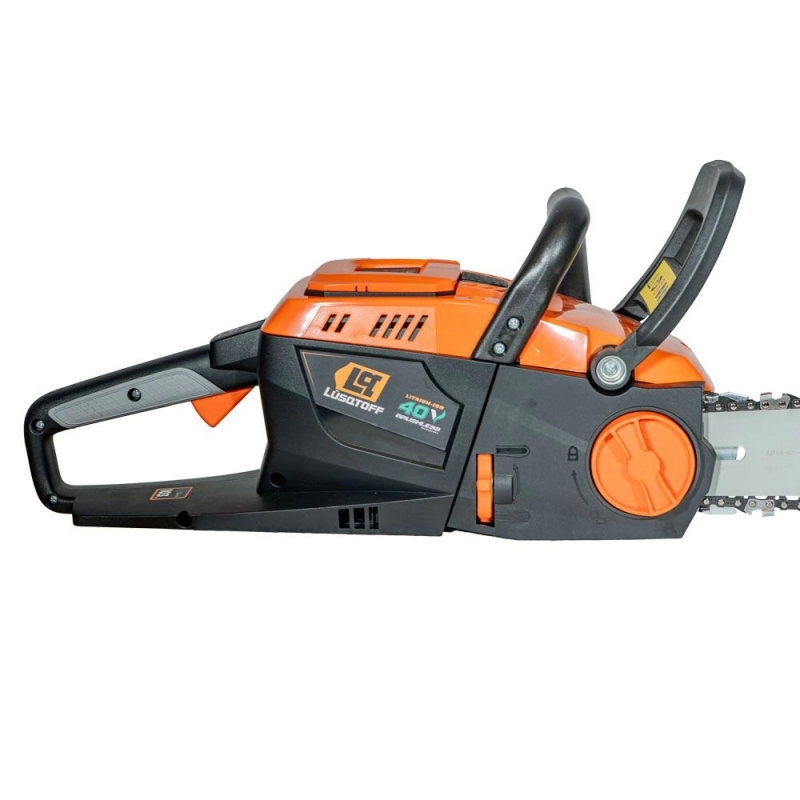 Motosierra a batería LÜSQTOFF de 40V, ideal para tareas de poda y corte en jardines. Potencia y autonomía para un rendimiento eficiente.