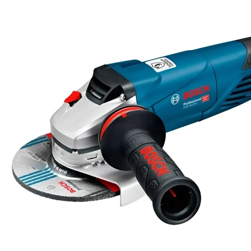 Amoladora angular Bosch GWS 18-125PL de 1800W, diseñada para uso profesional intensivo. Ofrece rendimiento superior y durabilidad para tareas de corte y desbaste con discos de 125mm.