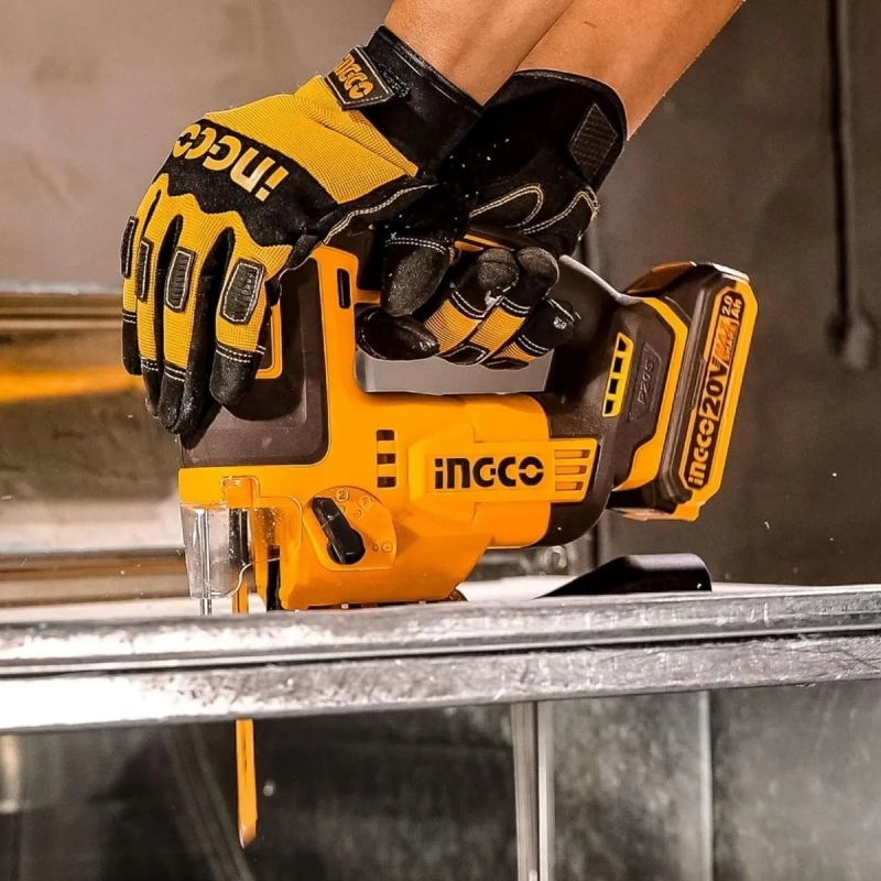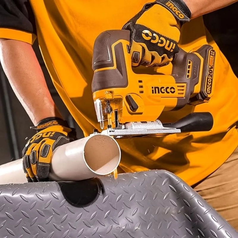 Sierra caladora inalámbrica de 20V de INGCO, diseñada para cortes precisos y eficientes en diversos materiales. Ofrece libertad de movimiento y rendimiento óptimo para trabajos profesionales y domésticos.