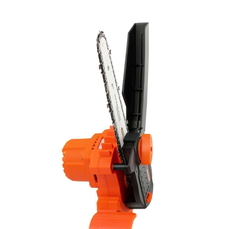 Motosierra a batería de 20V de la marca HAMILTON, ideal para trabajos de poda y corte en jardinería con total libertad de movimiento.