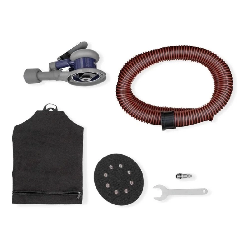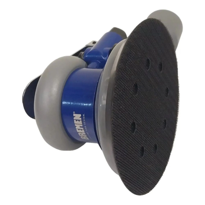 Lijadora roto orbital neumática BREMEN de alto rendimiento, diseñada para acabados finos y preparación de superficies en diversas aplicaciones industriales y automotrices.