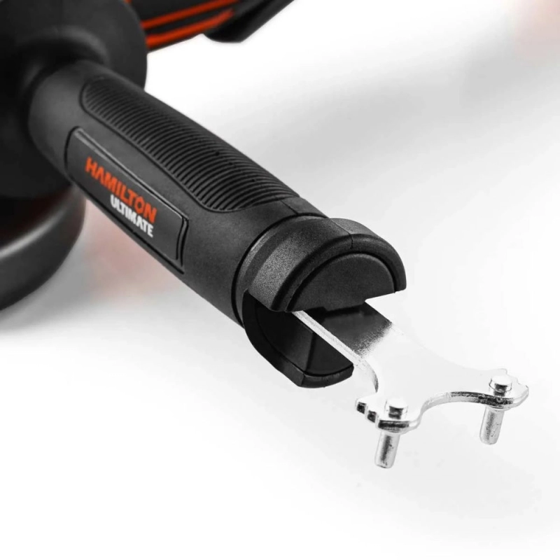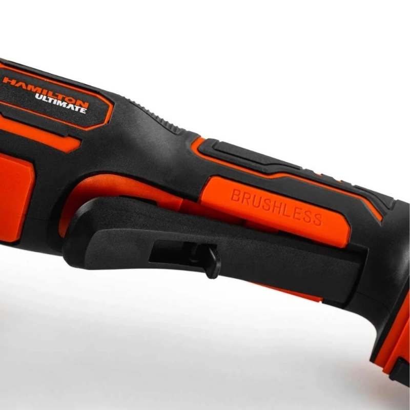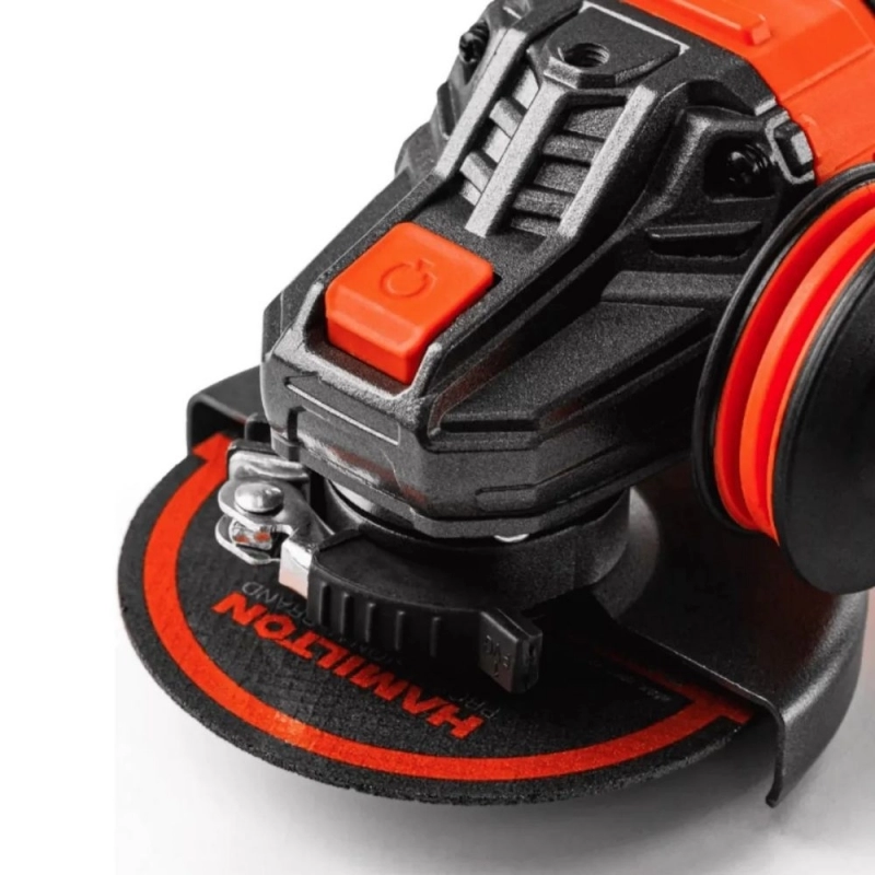 Amoladora angular inalámbrica de 20V de la marca HAMILTON, diseñada para trabajos de corte y desbaste con máxima movilidad y eficiencia.