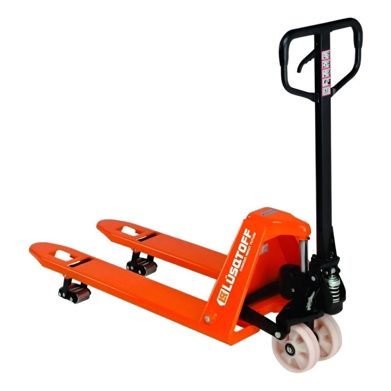 Zorra hidráulica LÜSQTOFF de 3 toneladas de capacidad, diseñada para el transporte eficiente y seguro de cargas pesadas en entornos industriales y de almacén.