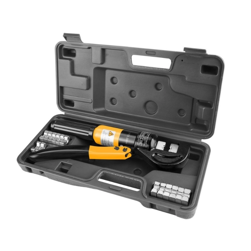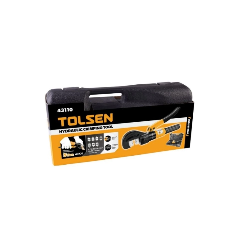 Crimpeadora hidráulica TOLSEN de 12 toneladas, diseñada para aplicaciones profesionales que requieren alta fuerza de crimpado y conexiones seguras. Ideal para terminales eléctricos y cables de gran sección.