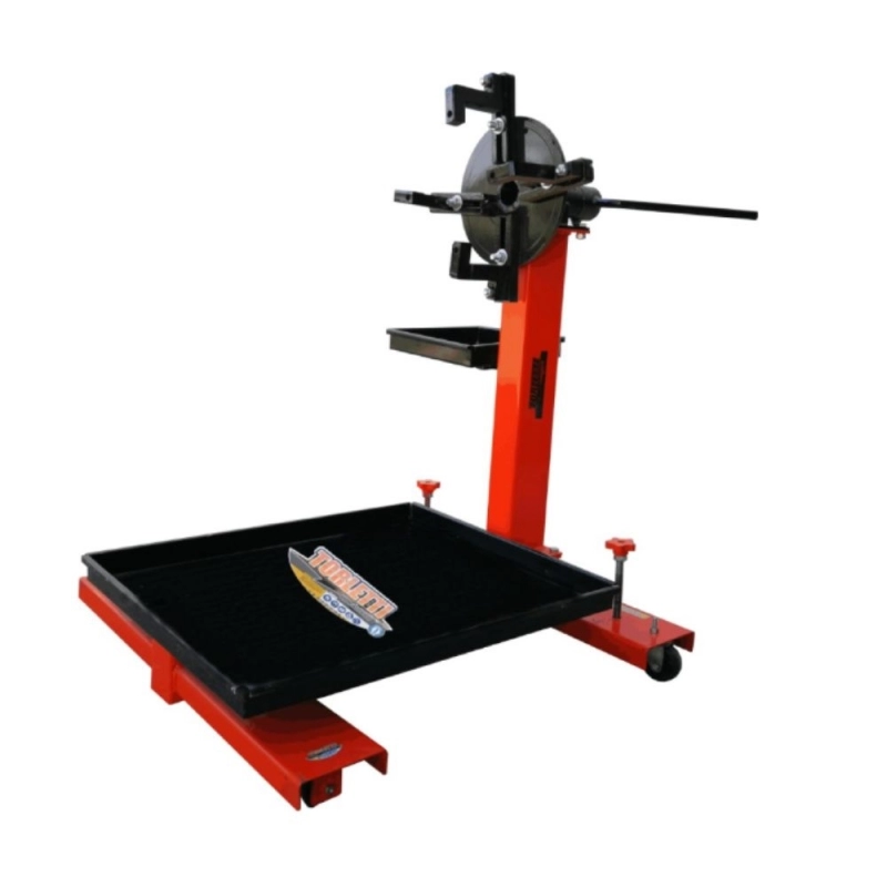 Banco de trabajo robusto y versátil diseñado para el soporte seguro y ergonómico de motores automotrices durante tareas de mantenimiento, reparación y reconstrucción. Ideal para talleres profesionales.