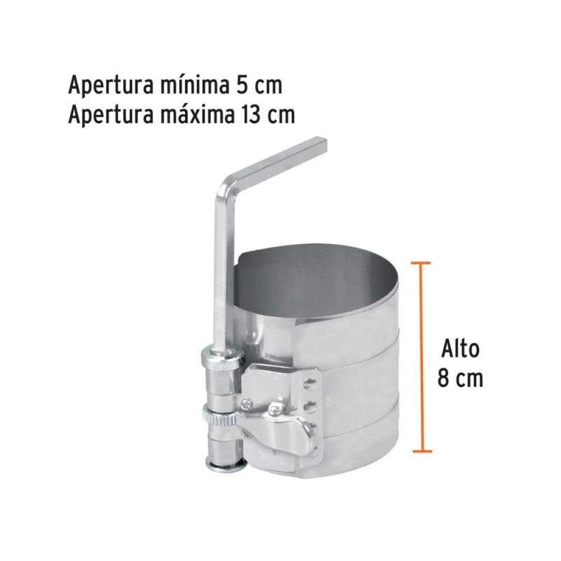 Herramienta esencial TRUPER para la instalación y compresión de aros de pistón en motores, garantizando un montaje preciso y seguro.
