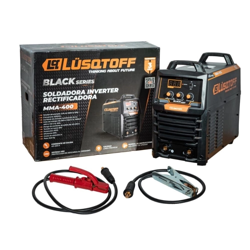 Soldadora Inverter Rectificadora LÜSQTOFF de alto rendimiento, diseñada para aplicaciones profesionales e industriales. Ofrece una capacidad de 400A y opera con alimentación trifásica de 380V, garantizando estabilidad y eficiencia en procesos de soldadura exigentes.