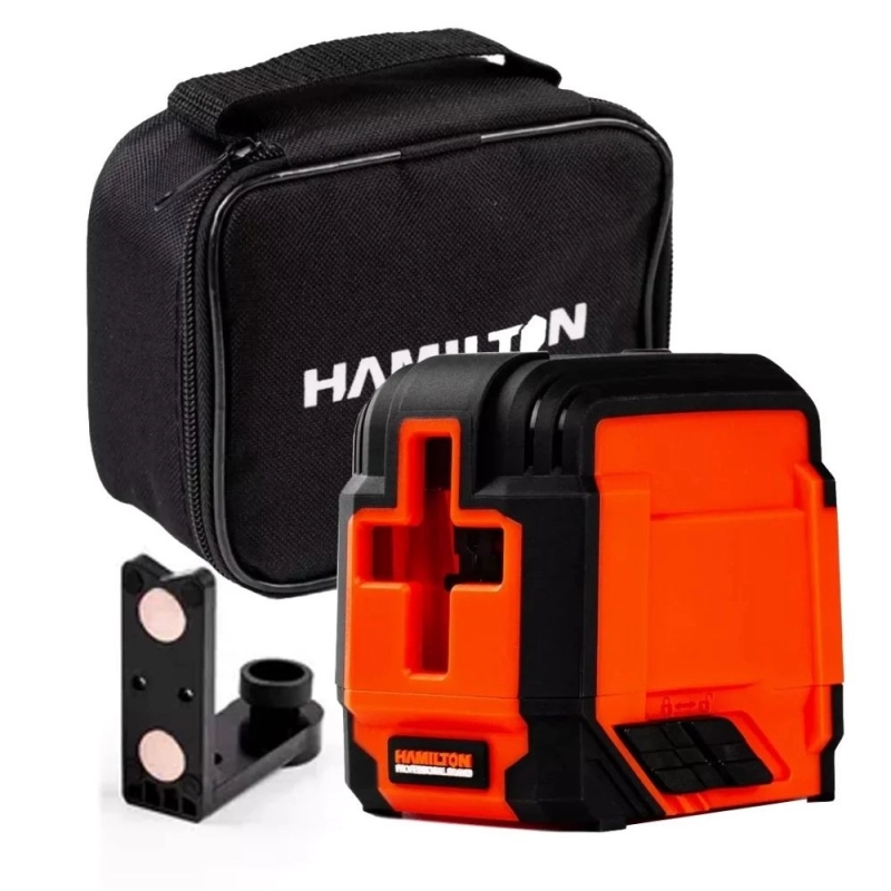 Nivel láser autonivelante HAMILTON, ideal para trabajos de construcción y remodelación. Proyecta líneas cruzadas verdes de alta visibilidad con una precisión de ±1.5 mm y un alcance de hasta 15 metros, facilitando la alineación y nivelación en diversas aplicaciones profesionales.