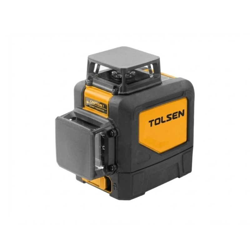 Nivel láser TOLSEN 3D de alta precisión con proyección de tres planos 360° (uno horizontal y dos verticales), ideal para trabajos de nivelación y alineación en construcción y reformas. Incorpora autonivelación y diodo láser verde para máxima visibilidad.