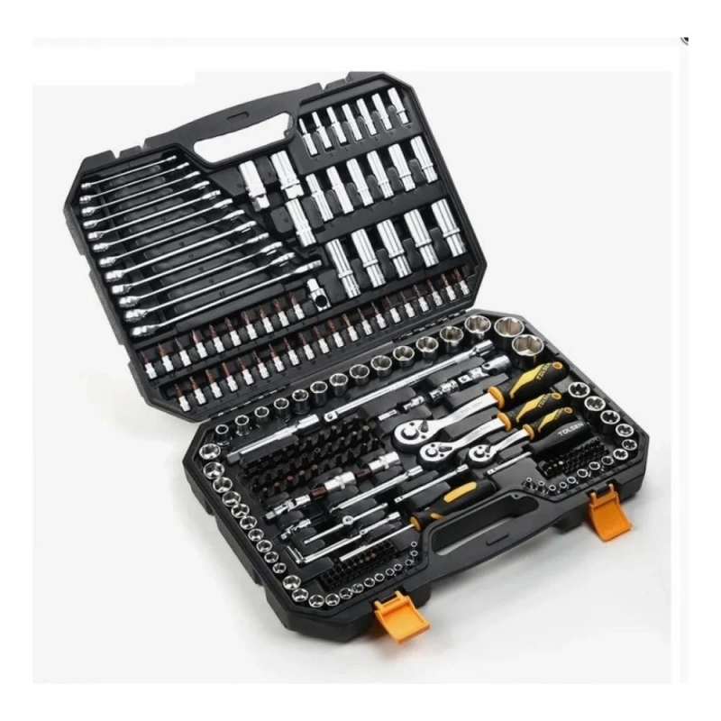 Completo set de herramientas profesional TOLSEN con 216 piezas, ideal para trabajos exigentes en taller y automotor.