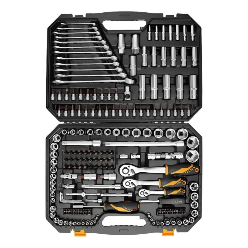 La Caja de Herramientas Profesional TOLSEN de 216 Piezas es un conjunto integral diseñado para satisfacer las demandas de profesionales y entusiastas del bricolaje. Incluye una amplia variedad de llaves, bocallaves, puntas y accesorios fabricados con materiales de alta resistencia, garantizando durabilidad y rendimiento superior. Su robusto estuche permite una organización eficiente y un transporte seguro, facilitando el acceso rápido a cada herramienta. Ideal para reparaciones automotrices, mantenimiento industrial y proyectos generales que requieran precisión y fiabilidad.