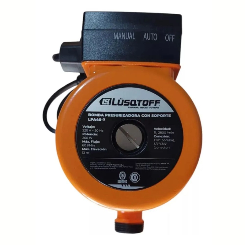 Bomba presurizadora LÜSQTOFF de 260W, ideal para aumentar la presión de agua en sistemas domésticos.