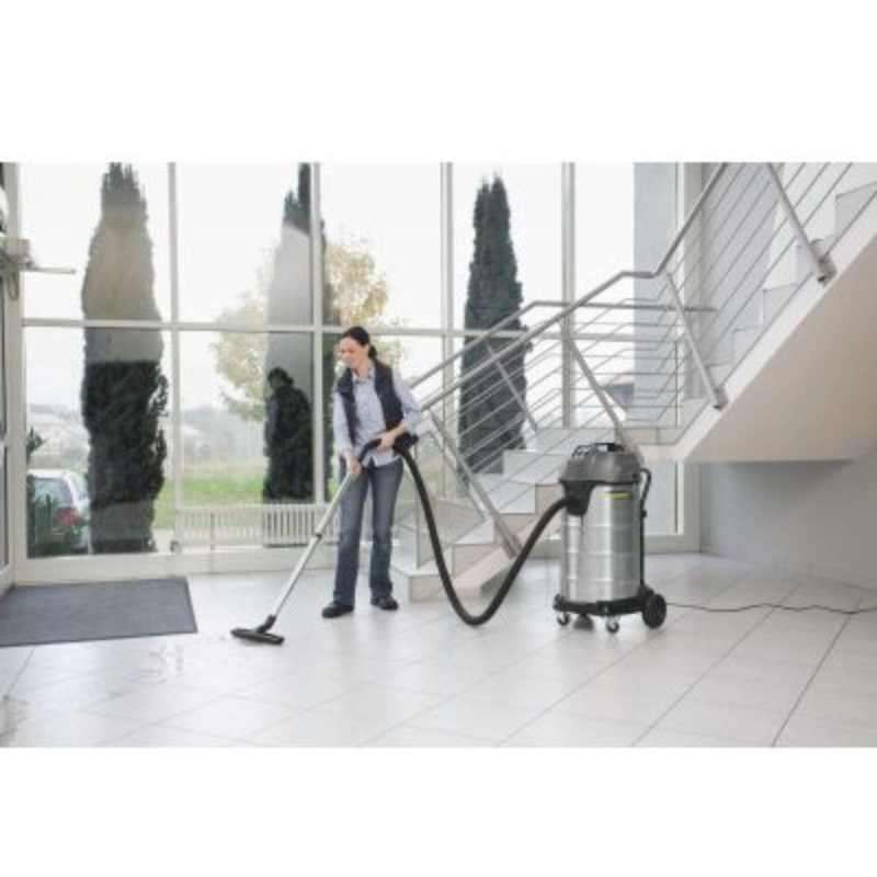 La Aspiradora Industrial KÄRCHER NT 90/2 es una solución robusta y de alto rendimiento para las tareas de limpieza más exigentes en entornos industriales y comerciales. Este equipo profesional está diseñado para aspirar eficazmente tanto líquidos como sólidos, ofreciendo una versatilidad superior. Incorpora dos potentes motores que garantizan una capacidad de succión excepcional y un funcionamiento continuo, incluso en condiciones adversas. Su construcción duradera y su diseño ergonómico facilitan el manejo y el transporte, mientras que su gran capacidad de depósito minimiza las interrupciones por vaciado. Ideal para talleres, fábricas, almacenes y cualquier espacio que requiera una limpieza profunda y eficiente.
