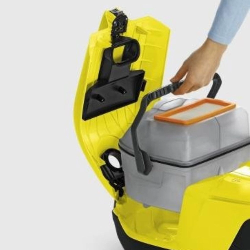 La Aspiradora KÄRCHER DS-5800 redefine la limpieza del hogar con su avanzado sistema de filtrado por agua, que atrapa eficazmente el polvo y las partículas de suciedad, eliminando la necesidad de bolsas de filtro tradicionales. Este innovador método garantiza un aire de salida significativamente más limpio, ideal para personas con alergias o sensibilidades respiratorias. Equipada con un motor de alta potencia, la DS-5800 ofrece una succión constante y profunda en diversas superficies, desde suelos duros hasta alfombras. Su diseño ergonómico y sus accesorios versátiles facilitan la limpieza de cada rincón del hogar. La tecnología de KÄRCHER asegura durabilidad, rendimiento superior y un mantenimiento sencillo, convirtiéndola en una inversión inteligente para un ambiente más saludable y libre de polvo.