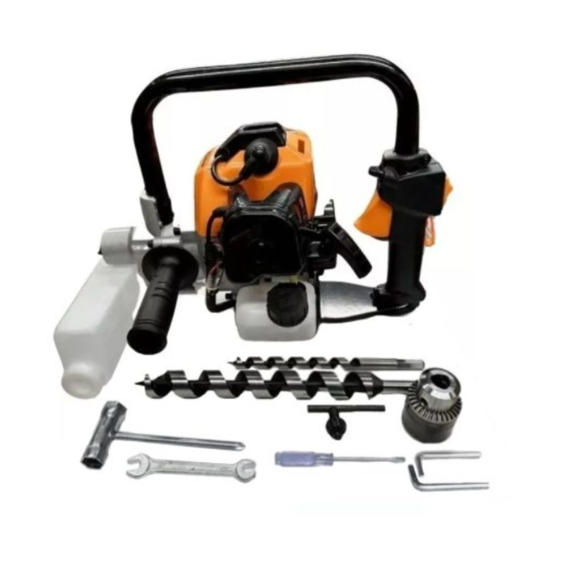 Mototaladro LÜSQTOFF de 26CC, diseñado para perforaciones robustas en entornos sin acceso a energía eléctrica. Ofrece autonomía y potencia para trabajos exigentes en construcción y agricultura.