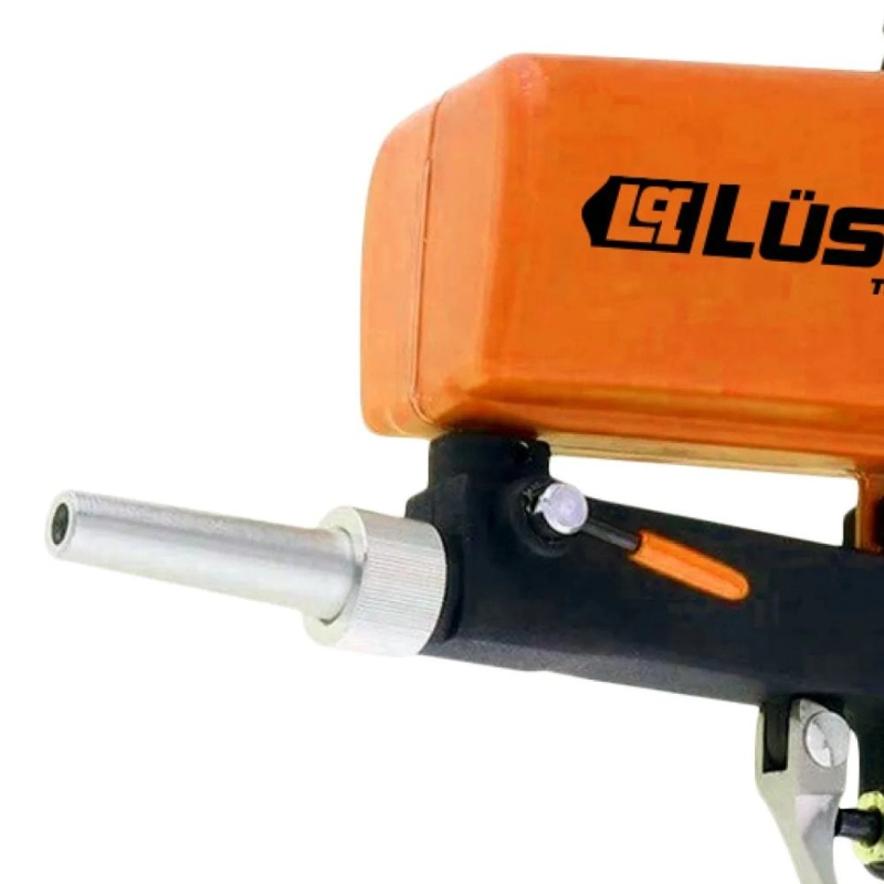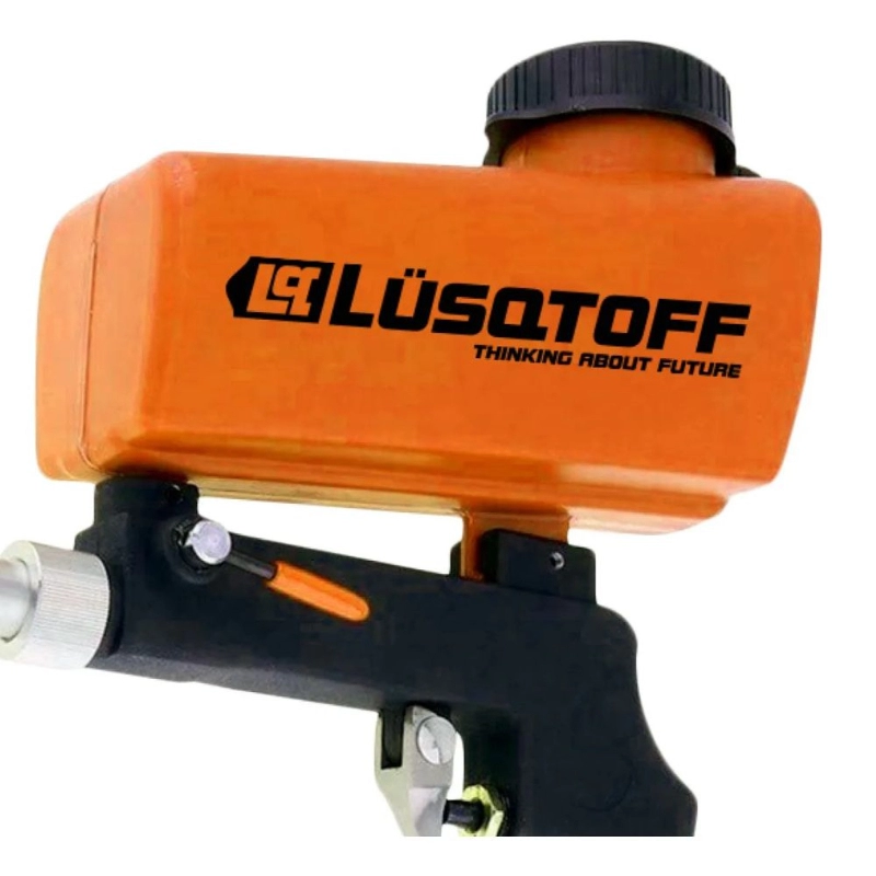 Pistola arenadora neumática LÜSQTOFF de alto rendimiento, diseñada para la preparación y limpieza de superficies mediante chorro de arena a una presión operativa de 90 PSI.