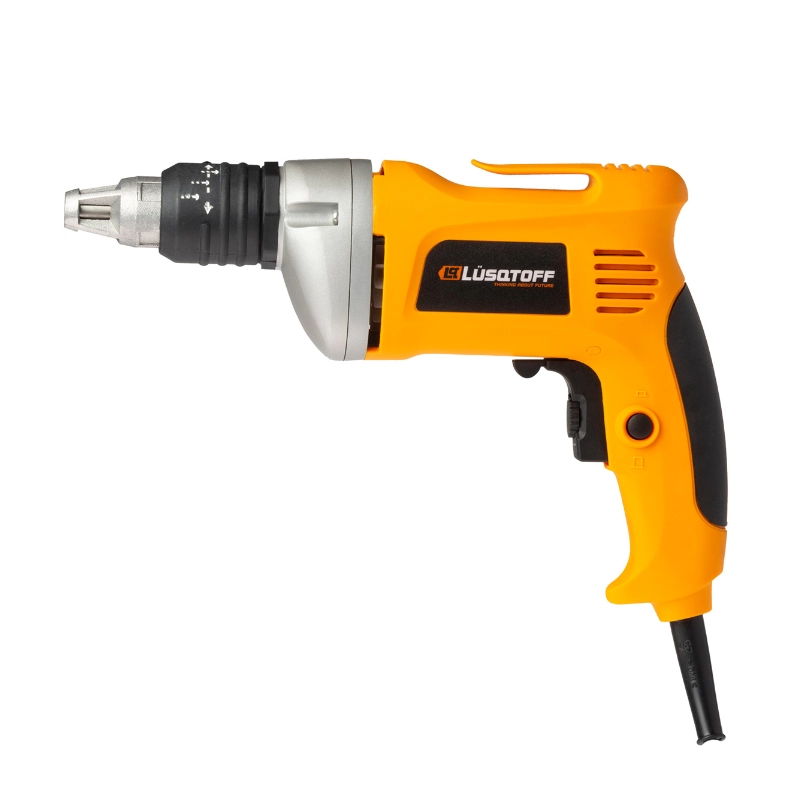 Atornillador eléctrico LÜSQTOFF diseñado para la instalación eficiente y precisa de placas de yeso (Durlock). Herramienta profesional que garantiza un rendimiento óptimo en trabajos de construcción y remodelación.
