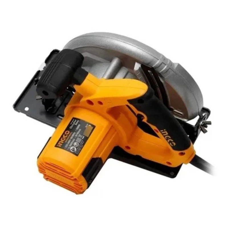 Potente sierra circular eléctrica INGCO CS18568-4 con motor de 1600W y disco de 185mm, ideal para cortes precisos en diversos materiales.